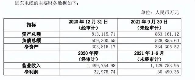 对比2021年同期,2021年1-9月,远东电缆实现营业收入1,129,753.95万元;实现净利润30,490.35万元。
