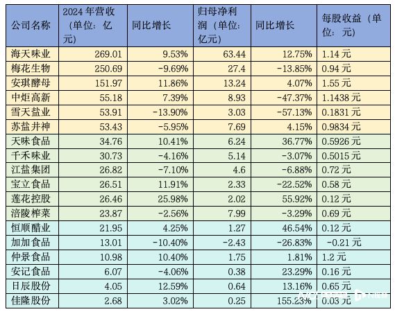 年报来看,在记者统计的18家调味品上市公司中,四成公司业绩处于下滑态势:有8家企业的营收同比下滑,也有8家上市公司的净利润同比下滑,具体包括中炬高新(600872.SH)、雪天盐业(600929.SH)、千禾味业(603027.SH)、江盐集团(601065.SH)以及加加食品(002650.SZ)等。