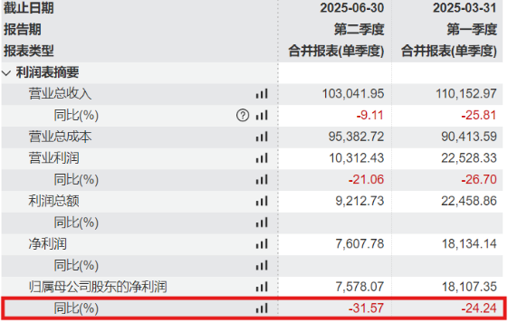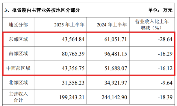 不过,南部地区收入仍未摆脱下滑态势,同期同比下降12.4%,区域复苏进程存在分化。受此影响,公司二季度营收同比降幅收窄至9.11%,但盈利端压力未得到同步缓解,归母净利润同比仍下滑31.57%,反映出渠道调整的成效暂未完全传导至利润端,盈利修复仍需时间。