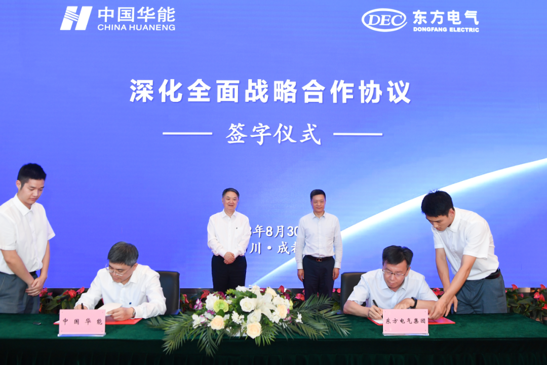 中国华能董事会秘书袁刚,东方电气股份有限公司副总裁高峰,中国华能、东方电气集团有关单位负责同志参加上述活动。