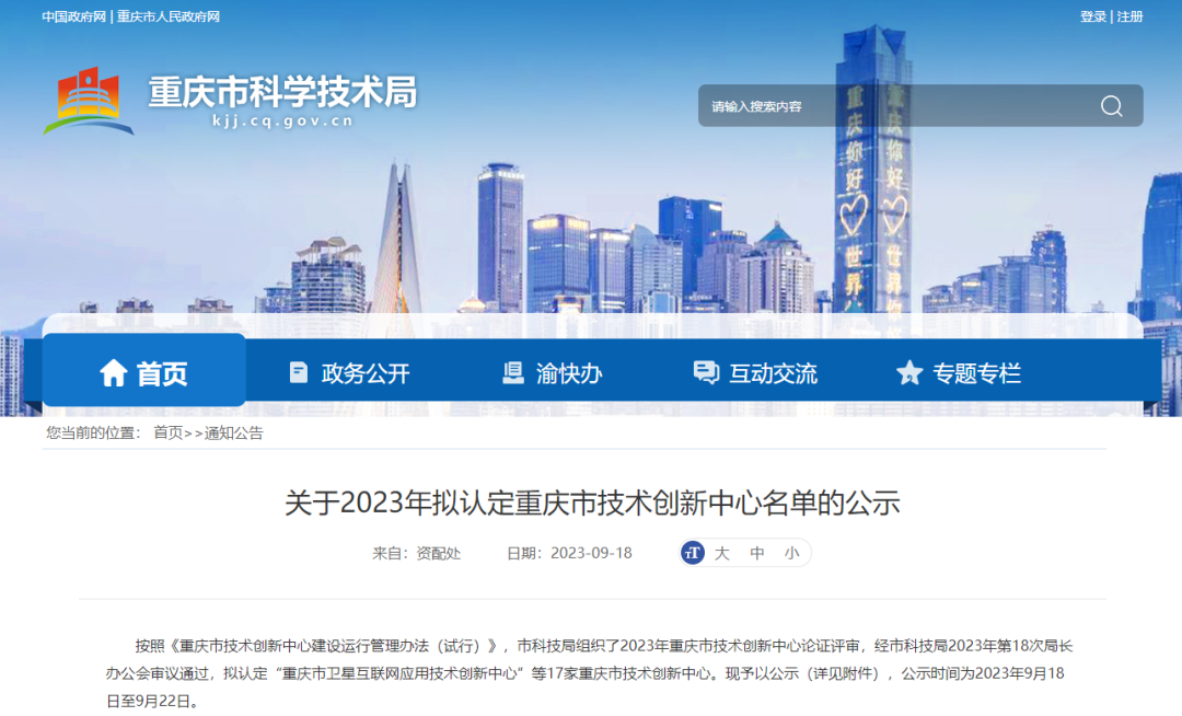 重庆市科学技术局发布