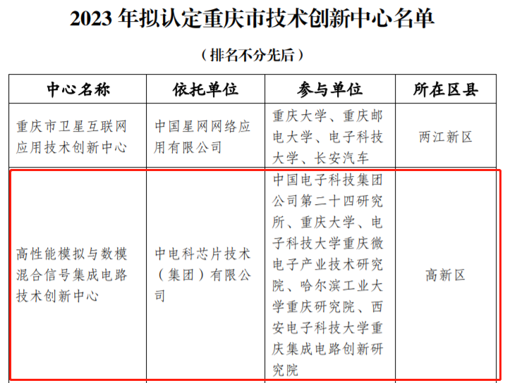 如“高性能模拟与数模混合信号集成电路技术创新中心”,就是开展高端数据转换器芯片设计技术创新、产品升级,提高行业竞争力和市场占有率,打造国内高性能模拟与混合信号集成电路产业新高地,发挥国家队优势,凝心聚力引领技术发展,为国家和重庆市集成电路高质量发展提供支撑和保障。