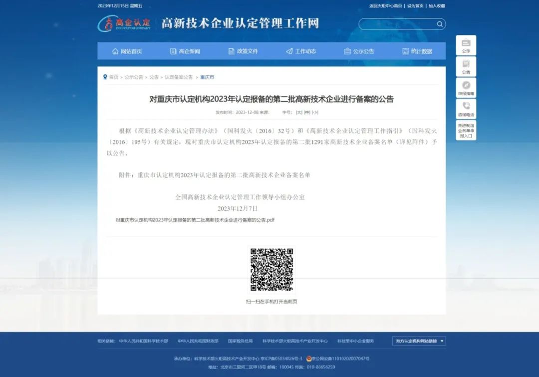 《对重庆市认定机构2023年认定报备的第一批第二批高新技术企业进行备案的公告》