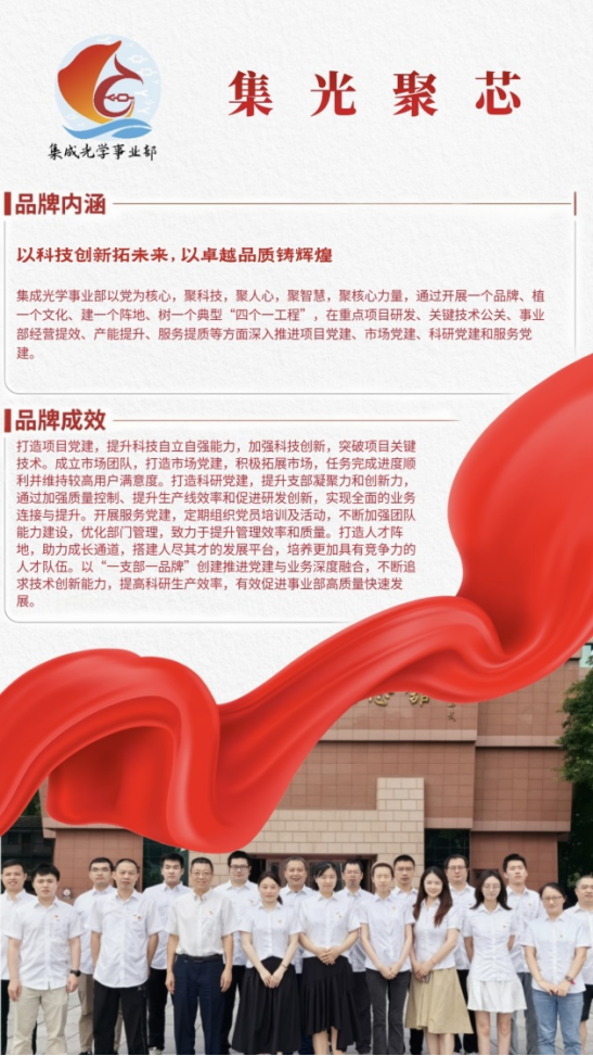 以开展创建品牌活动为契机,围绕集成光学事业部主责主业及重点工作任务,以提高科研效率、促进业务发展为核心,通过开展一个品牌、植一个文化、建一个阵地、树一个典型“四个一工程”,在重点项目研发、关键技术攻关、事业部经营提效、产能提升、服务提质等方面深入推进项目党建、市场党建、科研党建和服务党建。