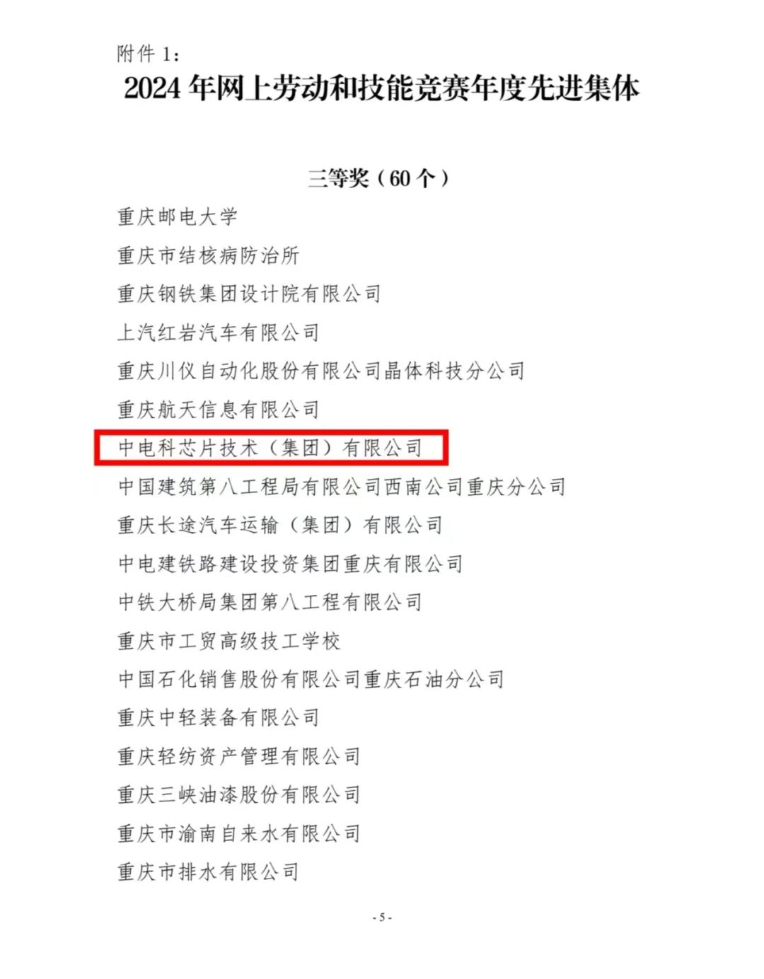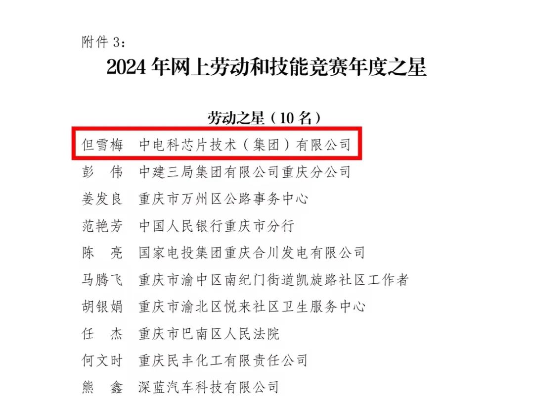 近日,重庆市总工会印发了《关于“建功新时代奋进新征程建设新重庆” 2024 年重庆市网上劳动和技能竞赛先进集体和优秀个人的通报》,电科芯片经全市各级工会多层级审核、多维度比选在全市 2508 家单位中脱颖而出,荣获2024年重庆市网上劳动和技能竞赛年度先进集体三等奖、微波事业部但雪梅同志荣获2024年重庆市网上劳动和技能竞赛“年度劳动之星”称号。