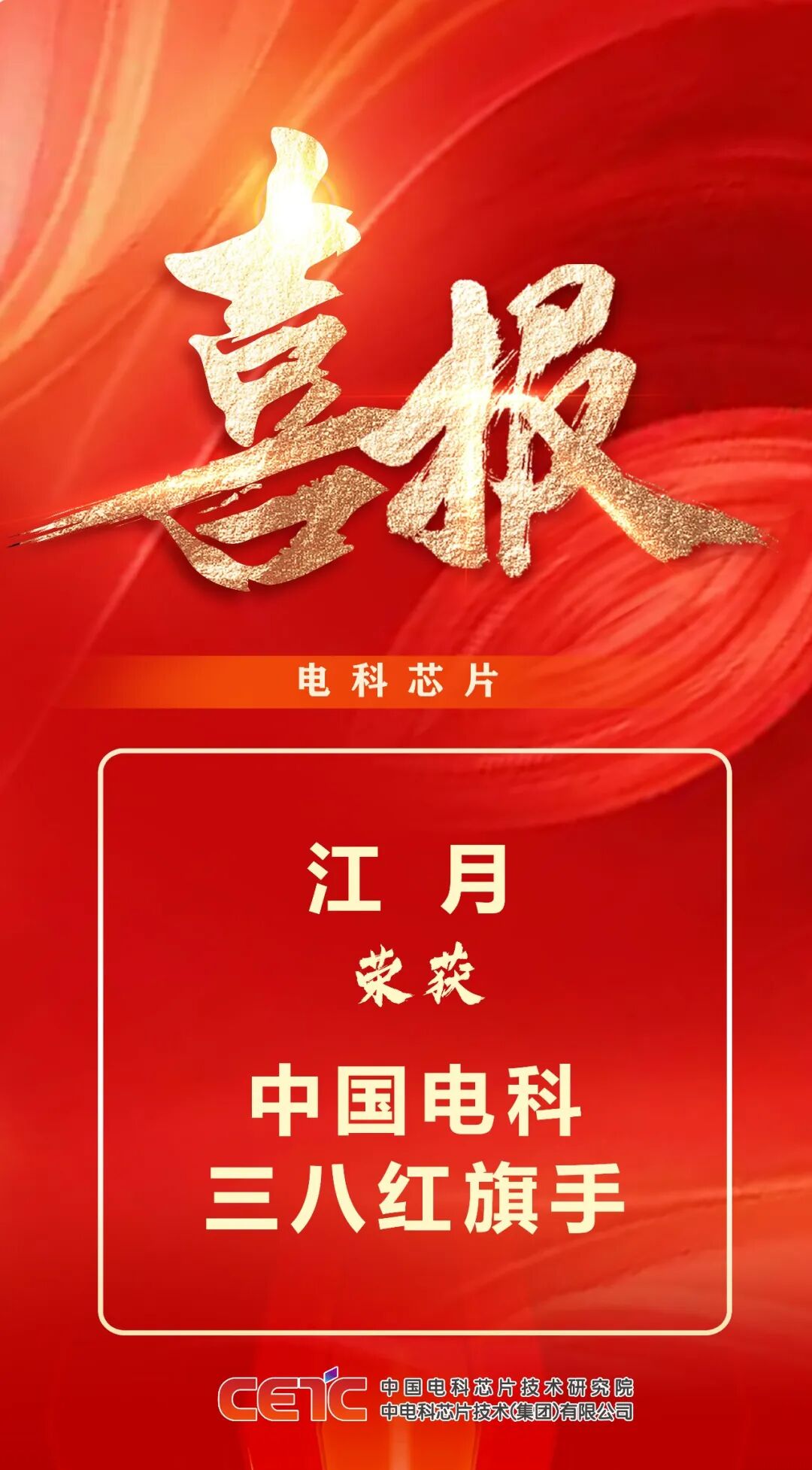近日,集团公司发布《关于表彰2024年-2025年度中国电科三八红旗集体和三八红旗手的决定》,电科芯片江月被授予“中国电科三八红旗手”称号。