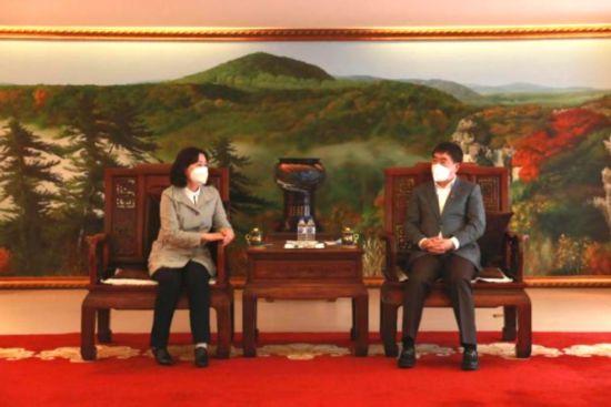一同到访亚泰集团参加捐赠活动的还有二道区工商联秘书长张丽楠、副秘书长王学兵。亚泰集团副总裁李斌、王劲松陪同接待。(来源:亚泰集团)
