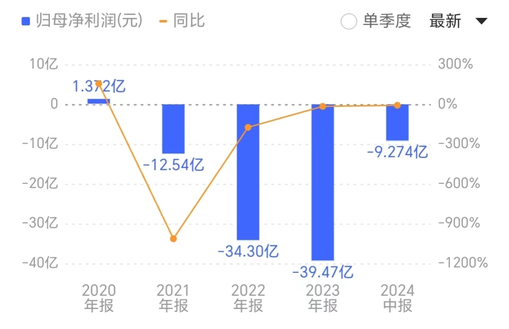 3年半时间,累计亏损近96亿元。此外,已连续三年营收规模下滑,今年上半年不足30亿元的营收,仅为2020年同期的三分之一。
