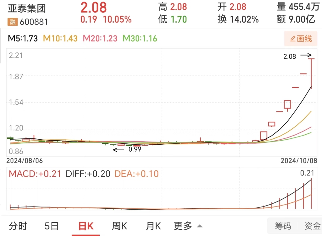 亚泰集团日K线走势图图片来源:同花顺