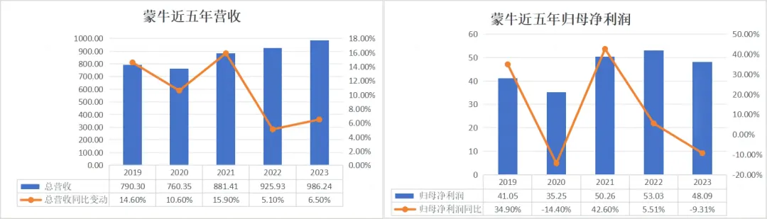 ▲蒙牛近五年营收及归母净利润表现,数据来源财报,镁经小组制图。