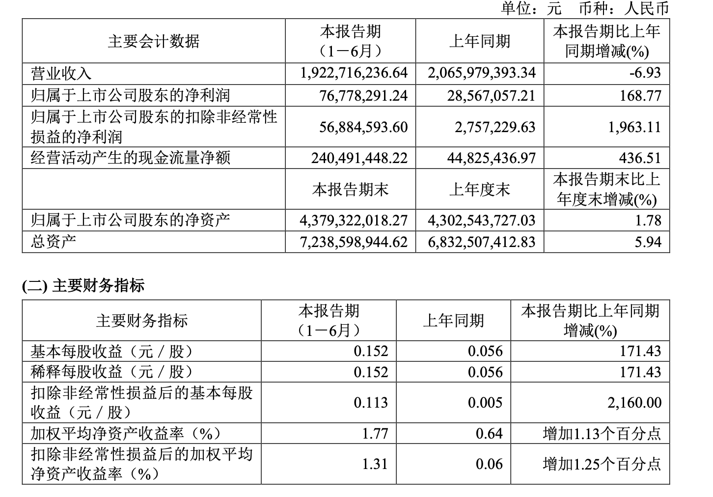8月23日,上海妙可蓝多食品科技股份有限公司(妙可蓝多,600882.SH)发布2024年半年度报告,妙可蓝多上半年营业收入19.23亿元,同比下降6.93%;归属于上市公司股东的净利润7677.83万元,同比大涨168.77%。基本每股收益0.152元,同比增长171.43%。