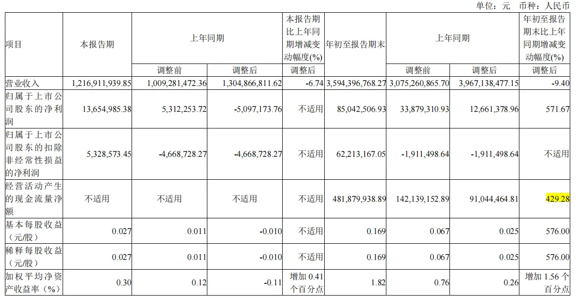 公司前9个月实现营收35.94亿元,同比下滑9.40%;归母净利润0.85亿元,同比大涨571.67%。