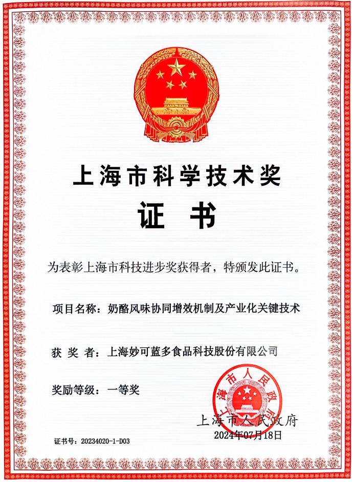 新年伊始,奶酪行业迎来了一项重要成果。凭借其参与的“奶酪风味协同增效机制及产业化关键技术”项目,妙可蓝多获得了上海市人民政府颁发的“上海市科学技术一等奖”。这一荣誉不仅是对妙可蓝多科研实力的高度认可,也标志着中国奶酪产业在技术创新与产品优化方面迈出了坚实一步。