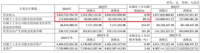 财报显示,2024年妙可蓝多的营收达到48.44亿元,同比下滑8.99%,归属于上市公司股东的净利润却实现了89.16%的增长,达到1.14亿元;扣除非经常性损益后,归属于上市公司股东的净利润也大幅增长了554.27%,达到4691.93万元。