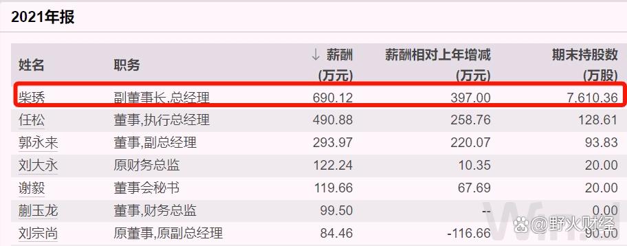 根据公司年报,2021年,柴琇的税前薪酬曾接近700万元,随后多年下调,2024年依旧有486万元,稳居高层第一。