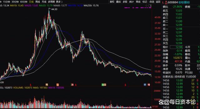 请注意,12月11日,杉杉股份在盘中跌出了两年多以来股价的新低。2021年10月28日,其创造44.3元高价。之后,股价步入下行通道。期间,股价虽然宽幅震荡,但从2022年8月中下旬开始几乎形成单边下跌走势。