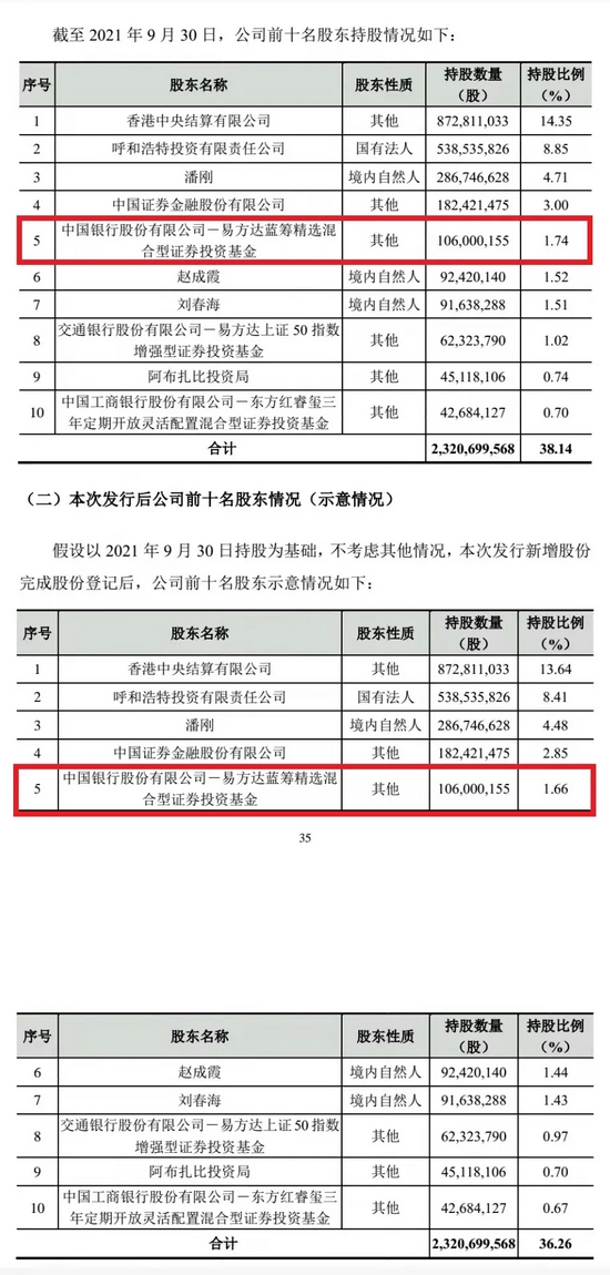 根据伊利股份披露的定增发行后公司前十名股东情况,易方达蓝筹精选在四季度一股未卖,依旧坚定持有伊利股份,继续位列伊利股份第5大流通股东。