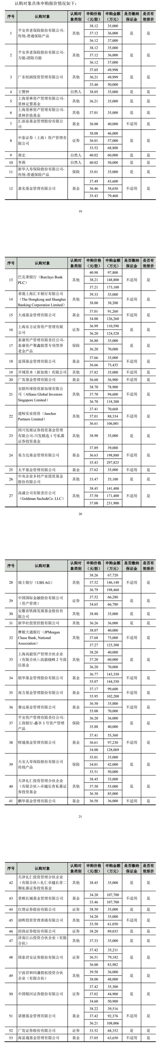 发行情况报告书披露,2021 年 11 月 23 日上午 9:00-12:00,簿记中心共收到 53 单申购报价单,包括平安养老保险在内多家机构热情参与定增报价。