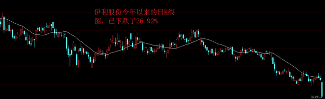 这些白马股今年以来的股价走势都不佳,其中,伊利股份的股价自今年以来已经下跌了26.92%,盘中刷新了今年以来的新低。