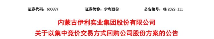 伊利股份(600887)10月30日晚间发布公告称,拟以集中竞价交易方式回购公司股份。本次回购的资金总额为10亿元~20亿元。回购价格不超过46.83元/股(含)。
