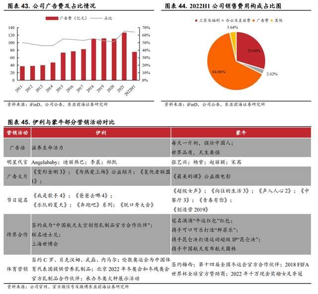 2011-2021 年公司广告费由 36.52 亿元增加至 126.10 亿元,在销售费用中的占比由 50.09%提升至 65.29%,2022H1 广告费在销售费用中的占比同比 2021H1 增加 12.64pct,公司根据新品推出节奏等产品情况逐步进行广告费用投放,持续打造品牌形象以深入触达消费者心智。