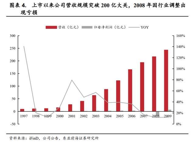 2005 年公司营收突破 100 亿元,2008 年超越 200 亿元,其中 2008 年因行业三聚氰胺事件影响,公司出现短暂亏损,但 2009 年快速扭亏为盈。