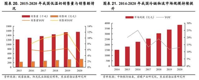 根据中物联冷链委及前瞻产业研究院披露,2014-2020 年我国冷链物流市场规模由 1500 亿元快速增长至 3832 亿元,且呈持续增长态势,冷链物流市场规模的向好发展为我国低温奶行业的发展提供了坚实基础。
