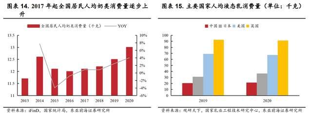 根据增长趋势来看,我国人均奶类消费量有望继续提升。