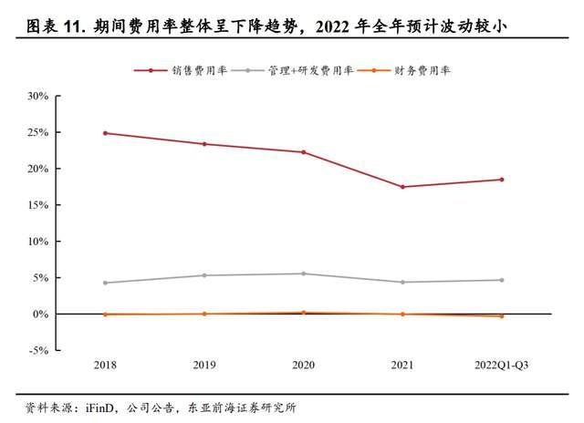 期间费用率近年来有下降趋势,费控管理水平进一步提升,2022 年全年费用率水平有望维持平稳。