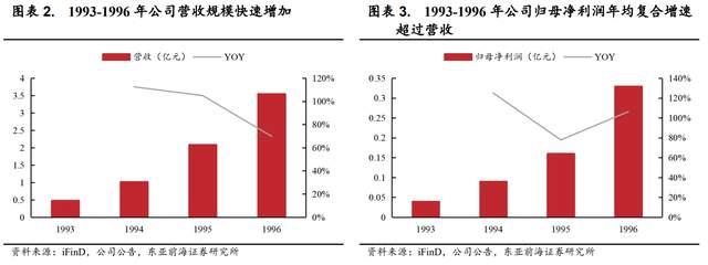 1993-1996 年成长期:企业改制布局逐渐清晰,营收与归母净利润爆发式增长。