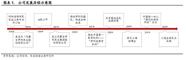 1996 年公司上市,次年内蒙古伊利实业集团股份有限公司正式成立。1997 年投产第一条利乐液态奶生产线,产品保质期得以延长,公司液态奶的销售范围进一步扩大。