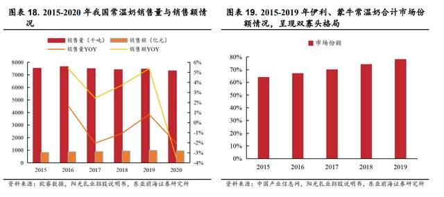 2.2.1.常温乳制品:常温奶占据主流市场,双寡头格局稳定