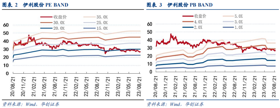 短期压力充分释放,下半年起经营步入改善通道,且公司加快健康食品布局,积极培育增长新引擎。双节备货进度良好,7月以来液奶销售已在回暖。同时,随着前期库存清理进入尾声、新国标产品于23H2陆续上架,整体奶粉行业有望回暖,预计伊利内生奶粉8月以来有所改善,澳优终端动销亦稳步回升,预计澳优全年可实现正增。考虑需求下半年需求动能增强、报表基数进一步降低,经营有望逐季改善。而值得注意的是,外部需求环境压力加剧背景下,公司一方面积极寻求多渠道、多市场拓展,23H1液奶电商平台销量同比+29.5%、海外市场同比+19.9%,另一方面以创新驱动,加快功能性食品布局,推出常温活性乳铁蛋白、控糖配方并成功研发婴幼儿菌株等,23H1以功能性产品为主的新品收入占比达15%、同比提升2.5pcts,贡献明显提升。