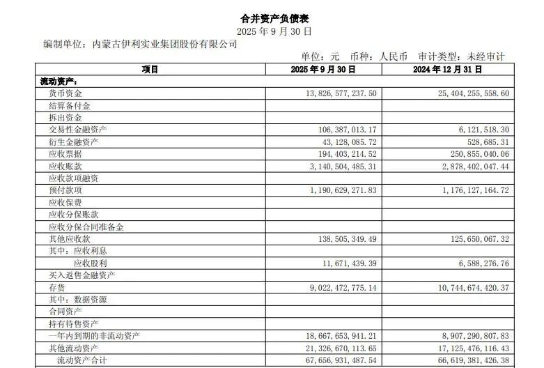 截至2025年三季度末, 伊利股份 货币资金余额138.27亿元,较2024年末的254.04亿元大幅减少45.57%,而短期借款却从363.55亿元增至451.85亿元。