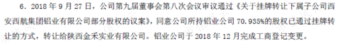 比如,2018年,公司就挂牌转让了旗下铝业公司。