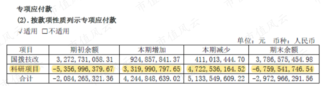 当然,这也就是说公司目前的专项应付款为负数且越来越高,从财务上来说不是什么好消息。