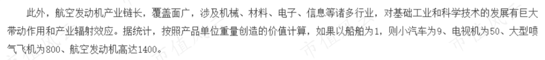 在航空领域,通常发动机价值为整机价值的20~30%。作为“现代工业皇冠上的明珠”,航空发动机是衡量一个国家综合科技水平、科技工业基础实力和综合国力的重要标志。