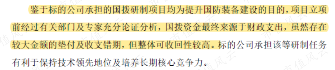 负数主要反映了科研产品投入成本以及预算指标内已完工科研成本超出年度结算价的部分。也就是说,公司实质上是在垫支经费支持相关科研活动。