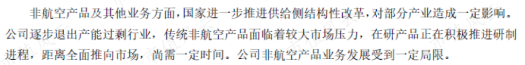 2015年:非航空产品及其他业务方面,部分传统产品产能过剩,还有部分产品竞争激烈,规模增长受到一定影响。为凝聚核心竞争力,公司对贸易和物流业务做出主动调整,缩减业务规模,重新分配资源专注于发展竞争优势明显的非航空产品和发动机修理业务。