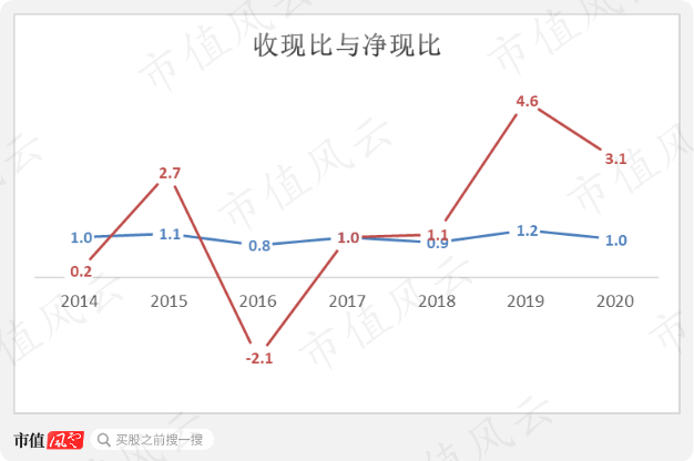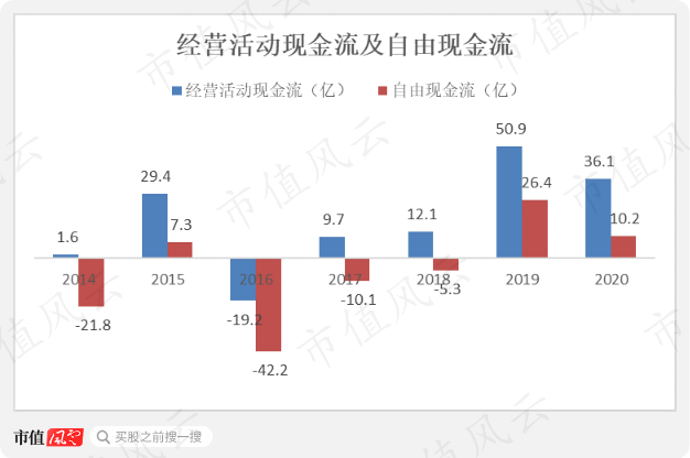 从现金流来看,公司经营活动现金流除了2016年以外都是正的,说明赚取真金白银的能力较强,2014-20年间净赚到120.7亿元。