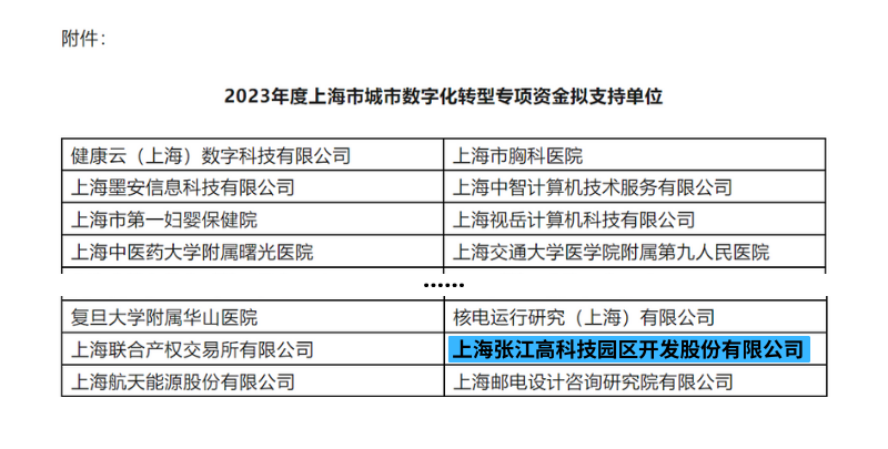 近日,上海市经济信息化委、市财政局联合开展2023 年度上海市城市数字化转型专项资金项目申报评审活动并发布了《2023年度上海市城市数字化转型专项资金情况公示》。张江高科数字孪生园区运营管理服务平台项目凭借创新的理念成功入选。