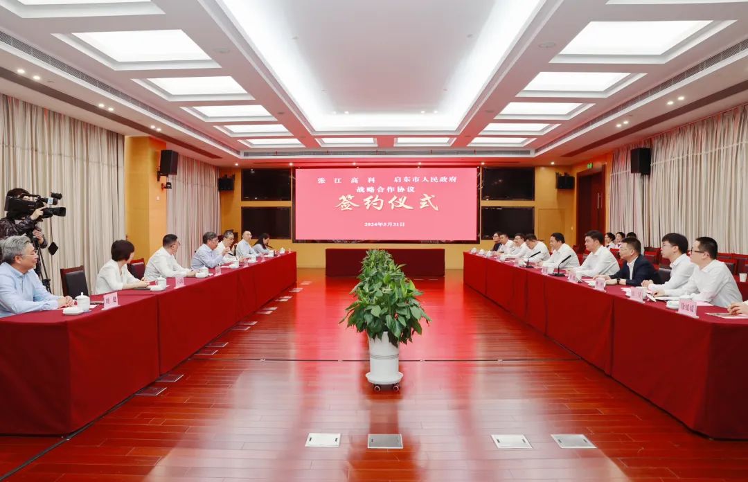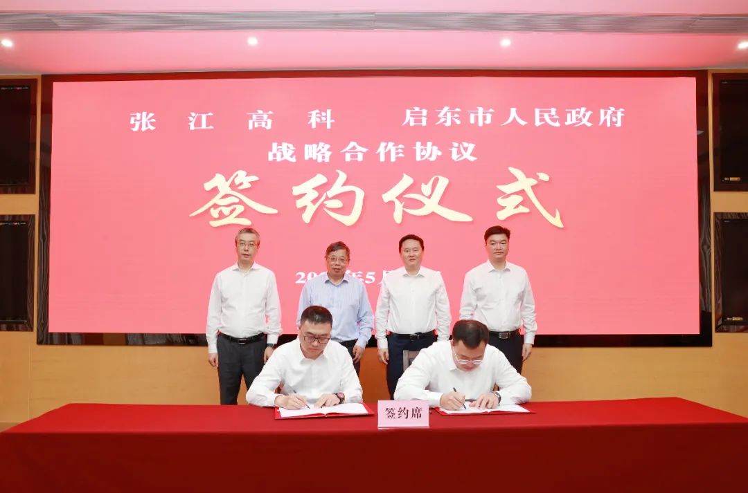 5月31日,张江高科与启东市人民政府战略合作协议签约仪式举行。启东市委书记杨中坚,市委副书记、市长蔡毅,张江高科副董事长、总经理何大军,党委委员、副总经理黄俊见证签约,张江高科党委委员、副总经理赵海生,启东市副市长、启东经济开发区党工委书记秦广荣代表张江高科与启东市人民政府,签署战略合作协议。