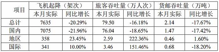 厦门空港1月10日发布2022年12月运输生产情况简报,当月旅客吞吐量79.50万人次,同比下降16.18%;货邮吞吐量2.14万吨,同比下降17.67%。