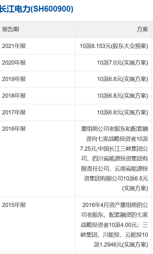 另外一点长江电力很受稳健投资者喜欢的是,它的分红很是可观,股息率较高,并且随着利润的增长而增长。