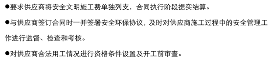 长江电力在供应商筛选标准中充分考虑供应商ESG管理因素,并结合项目特点设置相关筛选标准。例如,长江电力会将供应商环境影响、安全管理、合法用工、员工健康等因素融入招标采购、合同、物资管理中。并且若供应商发生失信行为,将按照发生次数及严重程度扣减相应信用分值或列入供应商黑名单。