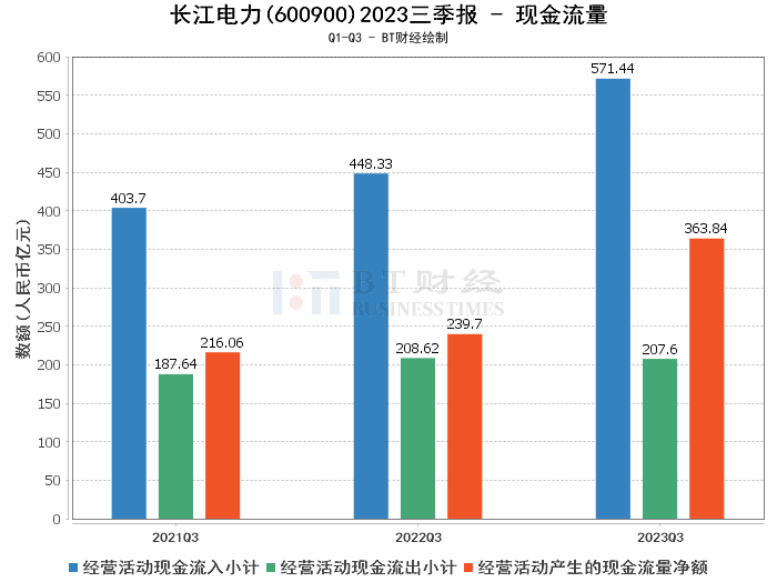 综上所述,长江电力在2023年三季度整体经营状况保持稳健。尽管面临资产负债率上升的挑战,但公司通过有效的业务运营和战略布局,实现了营业收入和净利润的增长。特别是在净利润的增长上,得益于长江流域来水偏丰,电站发电量显著增加,带动了利润的提升。同时,公司的现金流量净额增长,显示出良好的现金流管理能力。