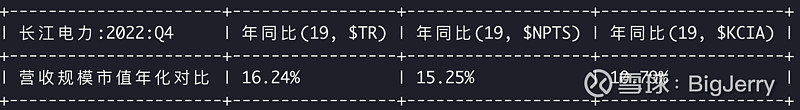 长江电力2003年11月上市,我们以最后一个完整年度2022年为终点,回溯看一下过去19年的几个关键增长数据,我们可以用工具分析一波:=ANALYZE(rSymAR, 19)