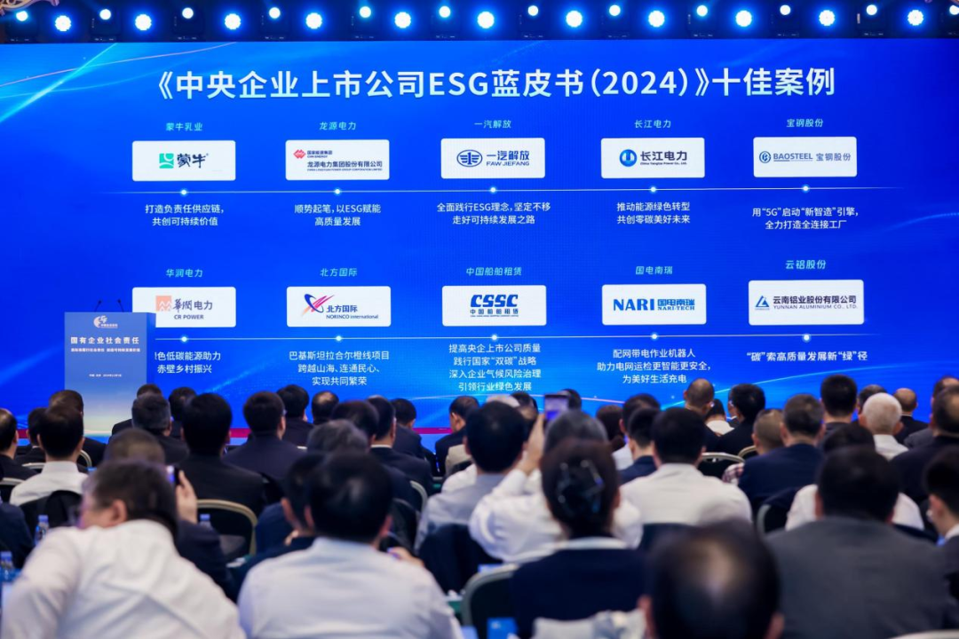 据悉,《中央企业上市公司环境、社会及治理(ESG)蓝皮书(2024)》由国务院国资委社会责任局指导,共计征集170余家央企上市公司210余个ESG实践案例,并邀请行业专家、研究学者等组成专家评审团,对中央企业上市公司ESG实践、管理、沟通等方面进行全面系统分析与总结,形成分议题优秀案例。在此基础上围绕案例的战略性、实践性、创新性、成效性和延展性等ESG工作价值维度进行评价打分,优中选优评选出具有标志性和引领性的十佳案例。最终,蒙牛乳业、龙源电力、一汽解放、长江电力等10个ESG案例荣誉入选,为中央企业上市公司积极践行ESG理念提供模范样板。