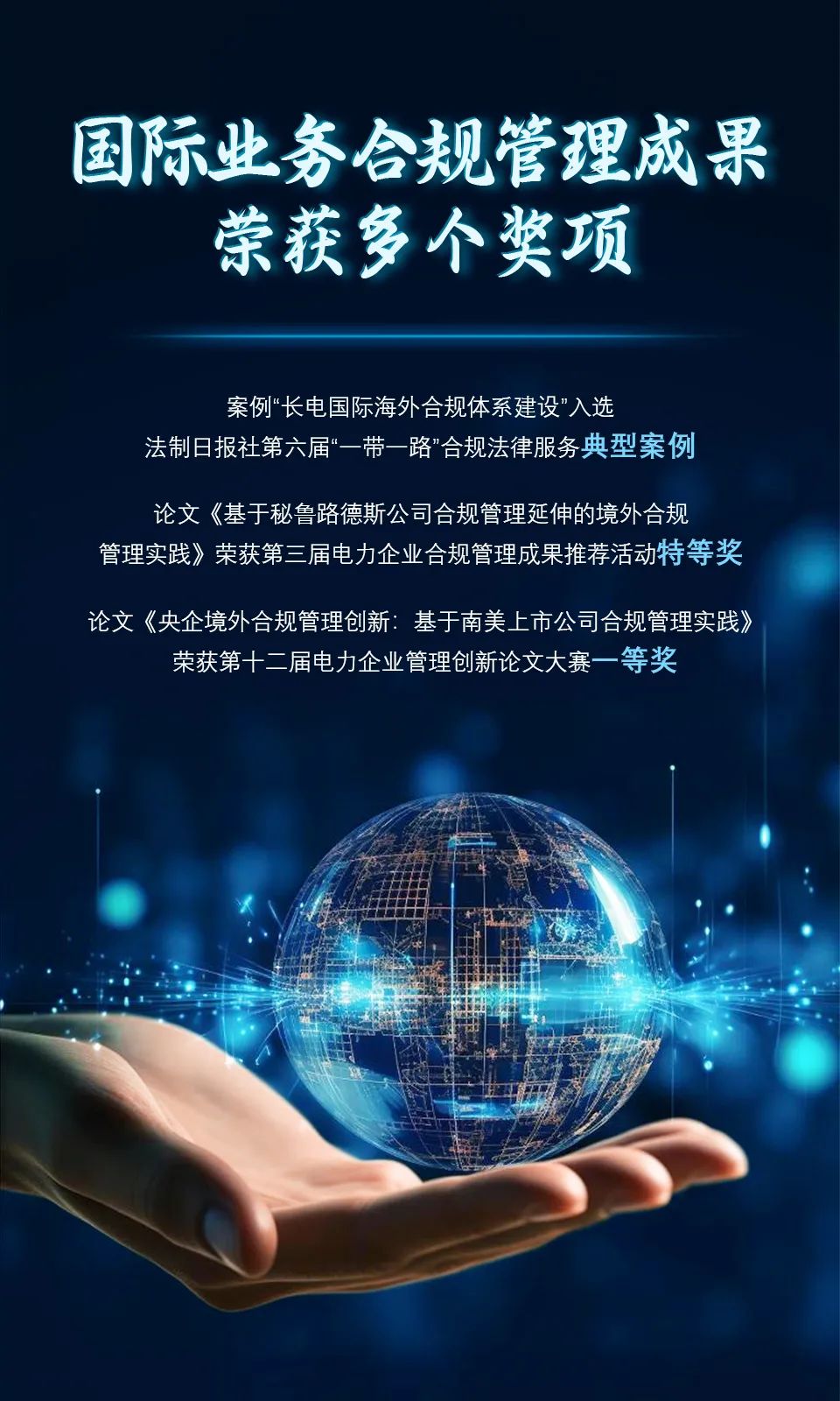 近日,长江电力国际业务合规管理成果荣获多个奖项。其中,案例“长电国际海外合规体系建设”入选法制日报社第六届“一带一路”合规法律服务典型案例,论文《基于秘鲁路德斯公司合规管理延伸的境外合规管理实践》《央企境外合规管理创新:基于南美上市公司合规管理实践》分别荣获第三届电力企业合规管理成果推荐活动特等奖、第十二届电力企业管理创新论文大赛一等奖。