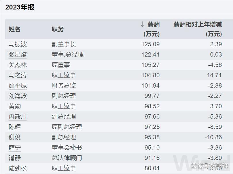 根据年报披露,2023年张星燎薪酬为122万元,比原副董事长马振波略低,高层中位列第二,还有两名高层薪酬也超过百万元。